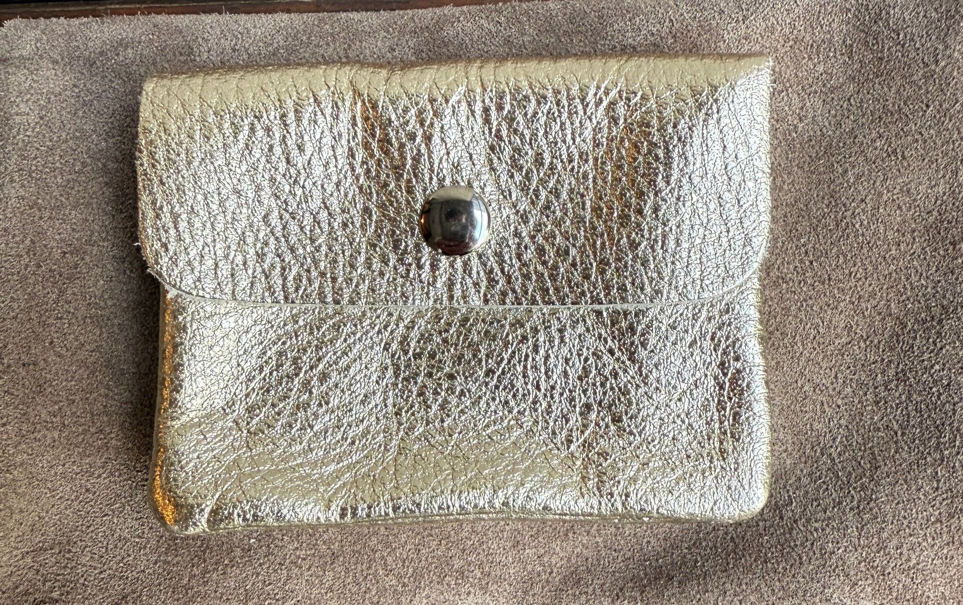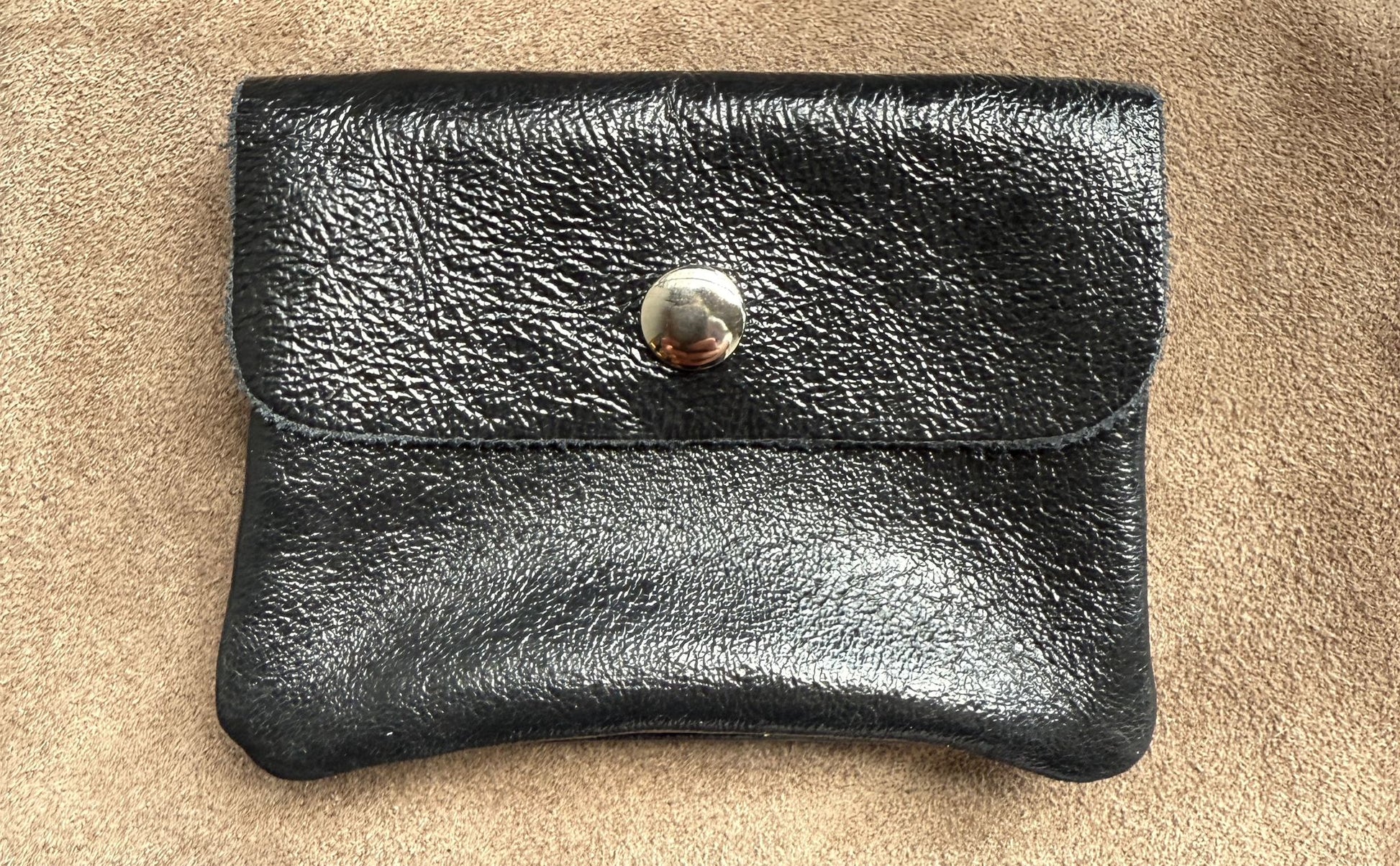 Gefertigt aus fein strukturiertem Leder liegt das Etui angenehm in der Hand. Der praktische Druckknopf sorgt dafür, dass Münzen, Karten oder kleine Essentials sicher verstaut sind. Dank seiner kompakten Größe passt es mühelos in jede Handtasche oder Jackentasche.