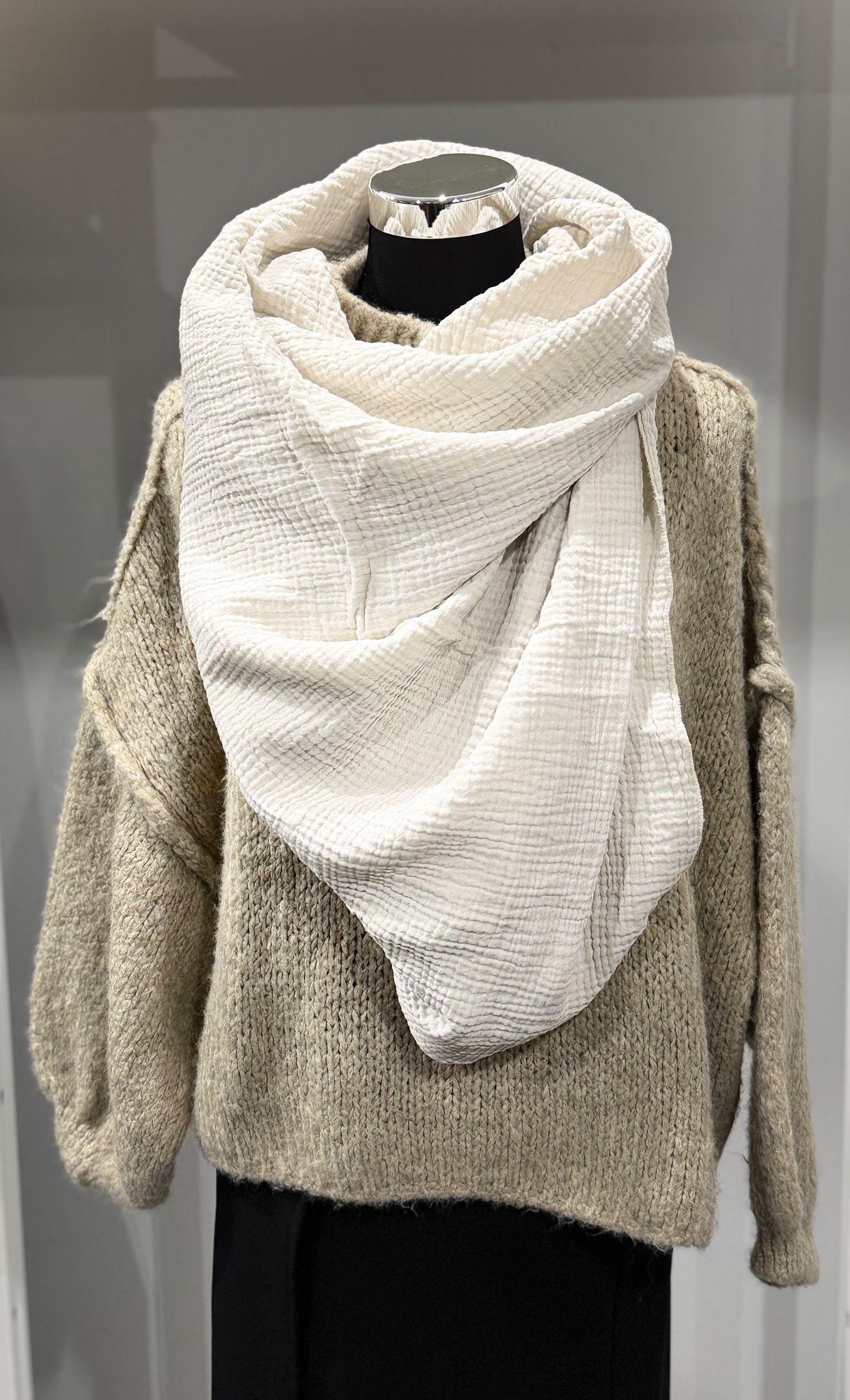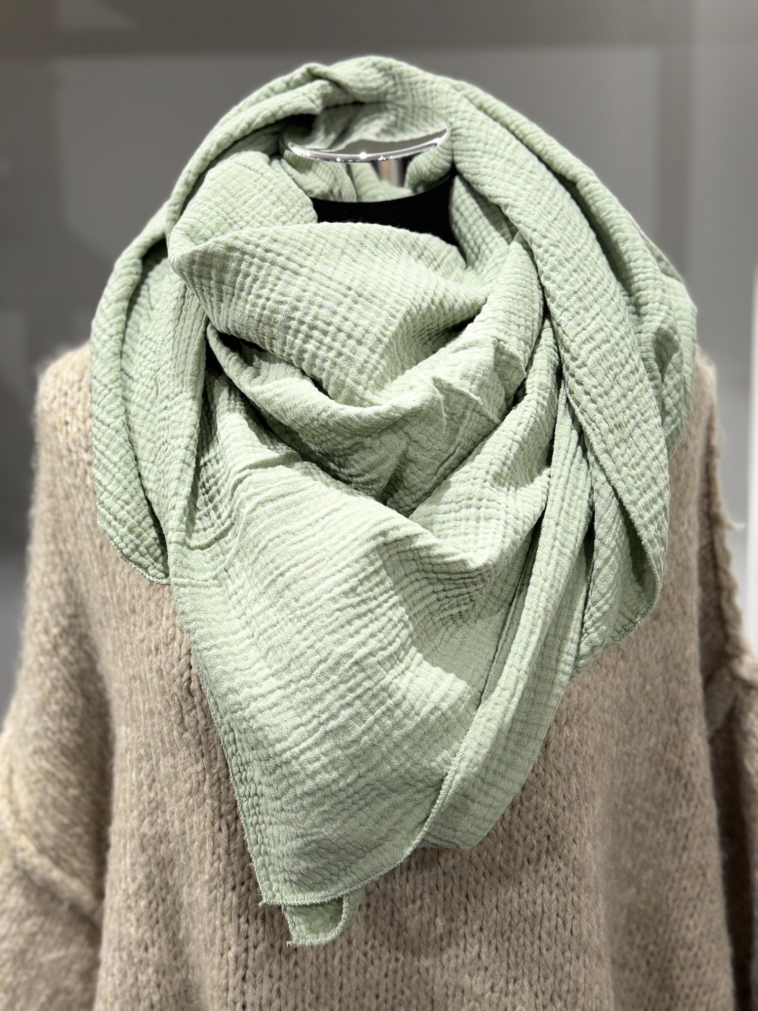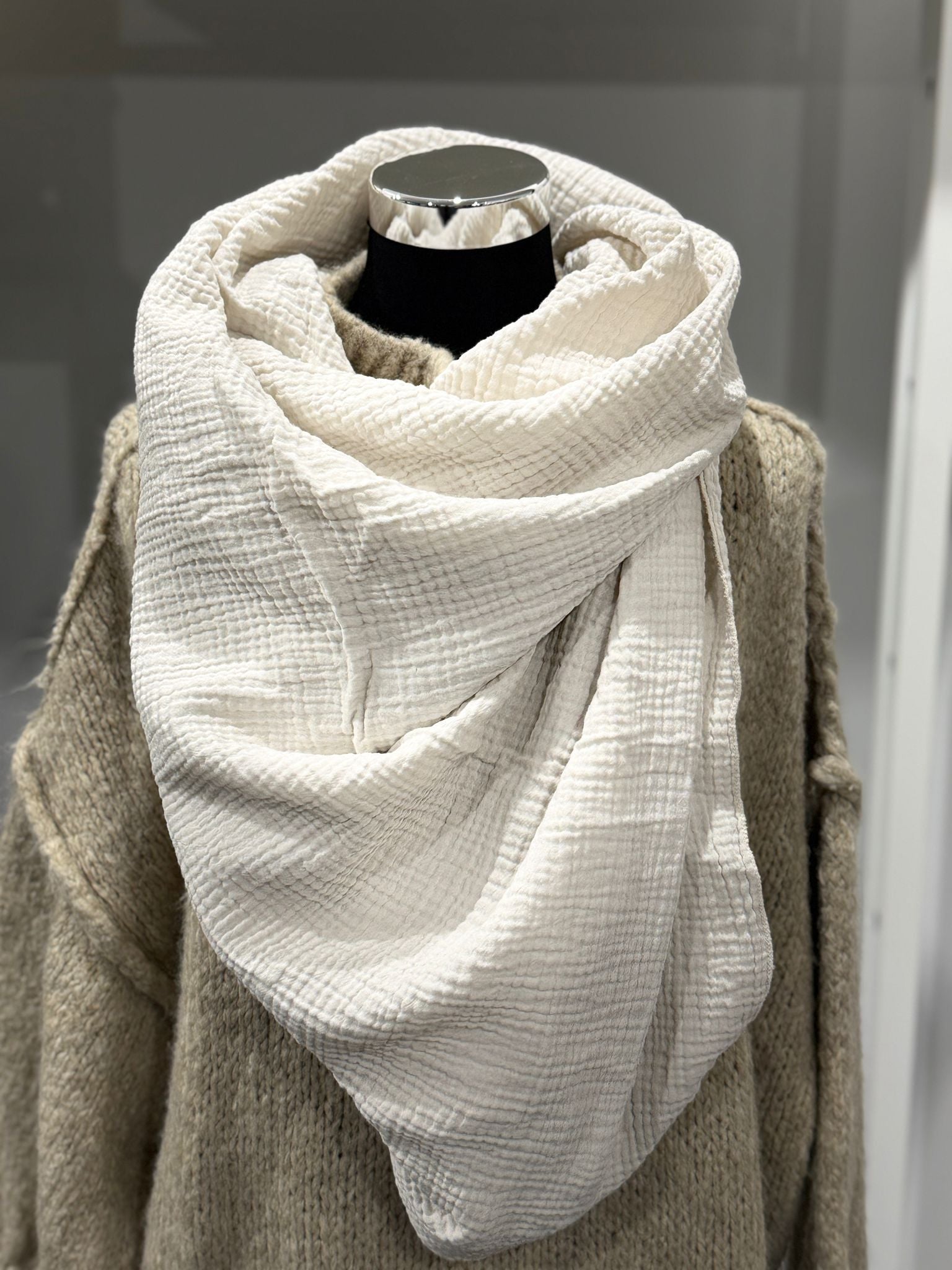 Dieses hochwertige Musselintuch ist der perfekte Begleiter für jede Jahreszeit. Gefertigt aus feinem, atmungsaktivem Musselin überzeugt es durch seine angenehm weiche Haptik und die charakteristische, leicht strukturierte Oberfläche. Der natürliche Look verleiht jedem Outfit eine entspannte Eleganz – ob lässig im Alltag oder stilvoll kombiniert.